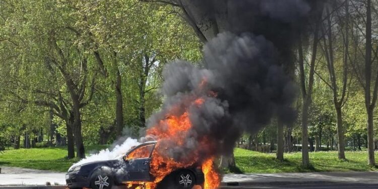 Esta mañana, en la calle Portal de Elorriaga de Vitoria, un incendio ha generado una gran columna de humo que ha alarmado a los vecinos de la zona. El fuego se ha originado tras observar un coche en llamas. El servicio de extinción de incendios local ha intervenido de inmediato y se han iniciado las labores para controlar el fuego.